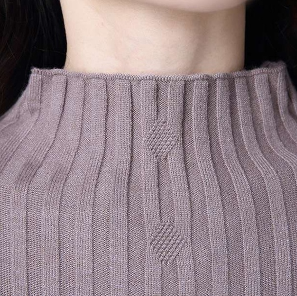 ハイネックと長袖デザインで秋冬のスタイリングに最適なニットアイテム。