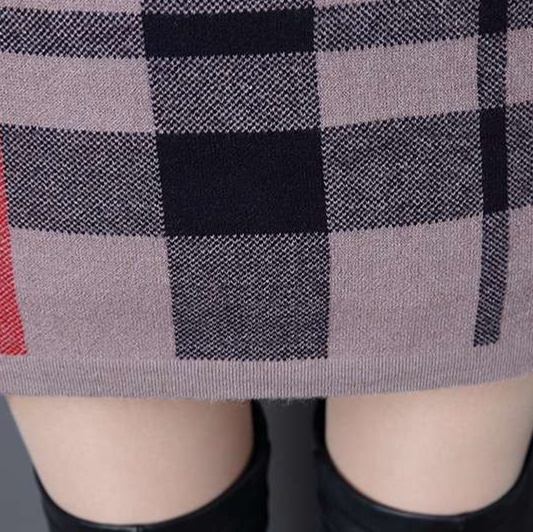 リブ編みの上部と柔らかな印象のチェック柄が組み合わさり、季節の変わり目にも快適な着心地を提供します。