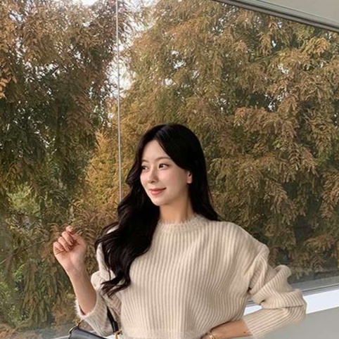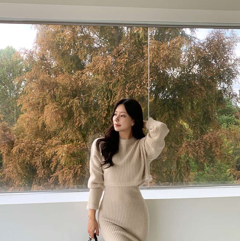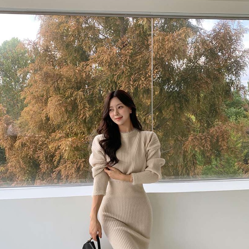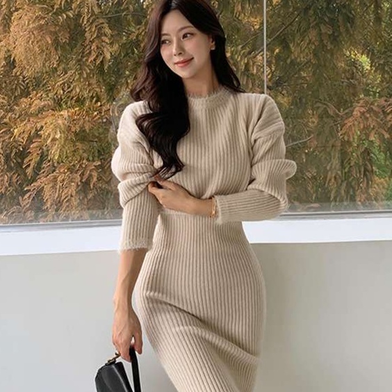 縦のラインが美しいリブ編みで、体のラインを綺麗に見せつつ、エレガントな雰囲気を演出します。