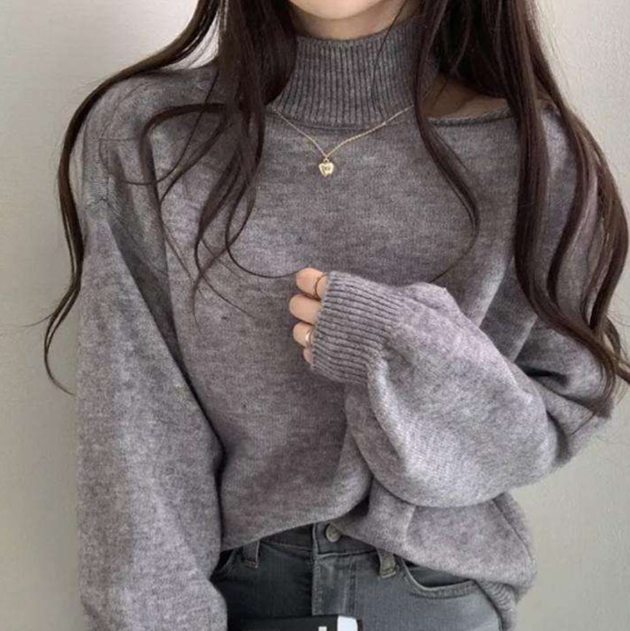 オフショルダー風の肩開きデザインが、リラックス感とトレンド感を両立させた上品な印象を演出します。