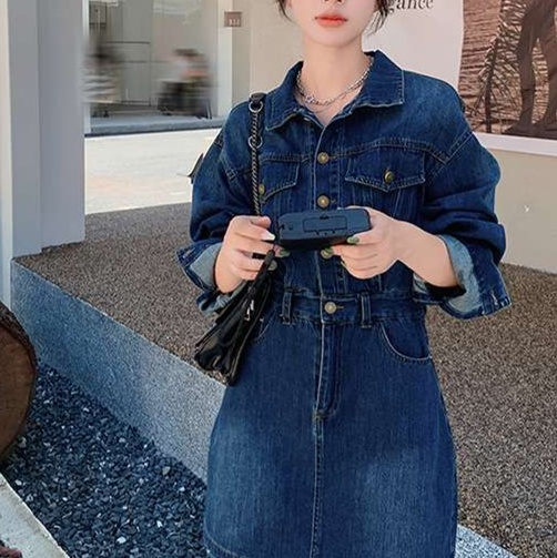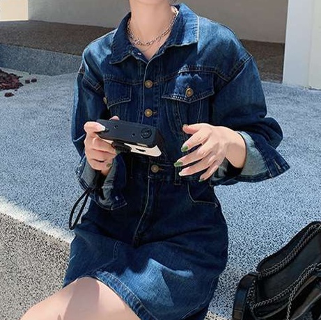 リラックス感漂うデニムミニワンピース。ゆったりとしたシルエットにフロントポケットと存在感あるボタンがポイント。カジュアルな印象ながら、女性らしさを引き立てるデザイン。ウエストをマークすることで、スタイルアップ効果も実現。デイリーユースにぴったりなアイテムです。