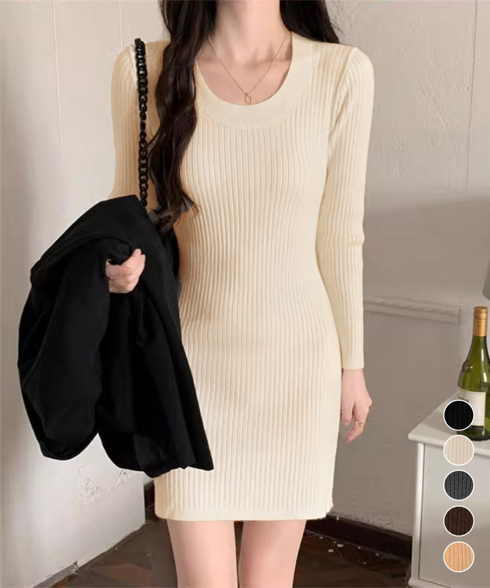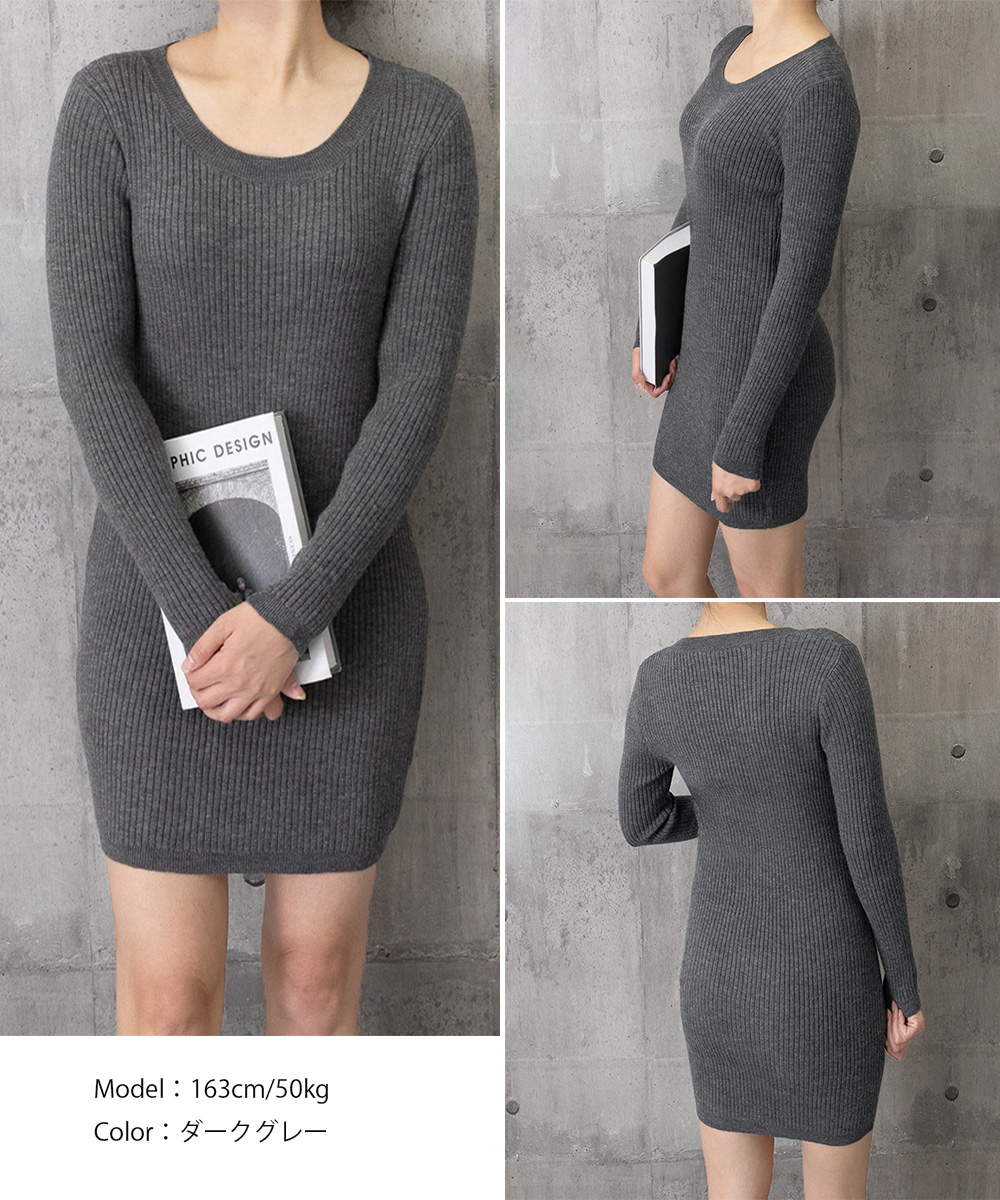体にぴったりフィットし、美しいボディラインを演出するリブニット素材のミニワンピース。