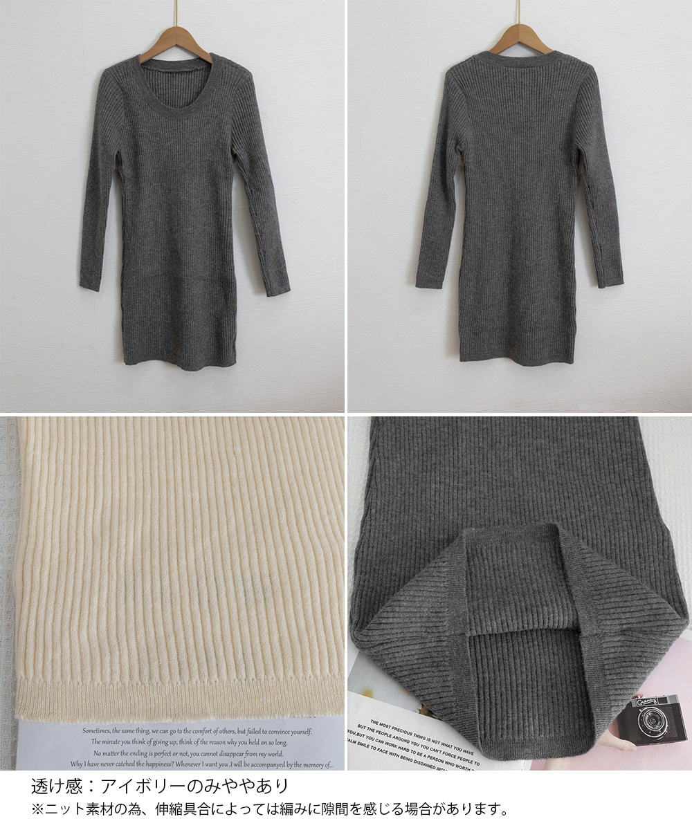 レディース 韓国風 ミニワンピース きれいめ 重ね着ワンピ 大人カジュアル ベーシックワンピース 普段使いショートワンピ インナーワンピ長袖 無地膝上ワンピース 着回しニットワンピ 体にぴったりフィットし、ボディラインを美しく魅せるリブニット素材のタイトワンピース。 柔らかく伸縮性のある素材で、快適な着心地ながら女性らしいシルエットを演出。 ロングブーツやショートジャケットを合わせて、大人フェミニンな秋冬コーデに。 素材:ポリエステル85%+アクリル15% カラー:ブラック/アイボリー/ダークグレー/ブラウン/キャメル サイズ:ワンサイズ 総丈:約79cm 肩幅:約28cm 袖丈:約55cm ゆき:約69cm 身幅:約34cm 胸囲:約68-110cm ウエスト:約64-106cm ヒップ:約72-114cm 裏地:なし 伸縮性:あり 透け感:アイボリーのみややあり ※ニット素材の為、伸縮具合によっては編みに隙間を感じる場合があります。 生産国:中国 ※すべて平置きサイズです(採寸方法違いより、多少の誤差がございますので、ご了承ください)。 ※海外輸入品のため、商品の細部仕様は多少異なる場合がございます。予めご了承の上、ご注文お願い致します。