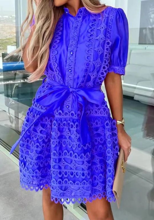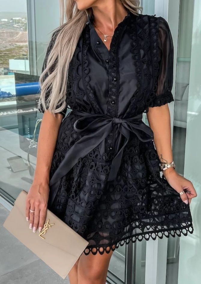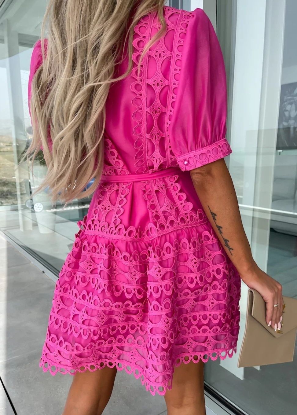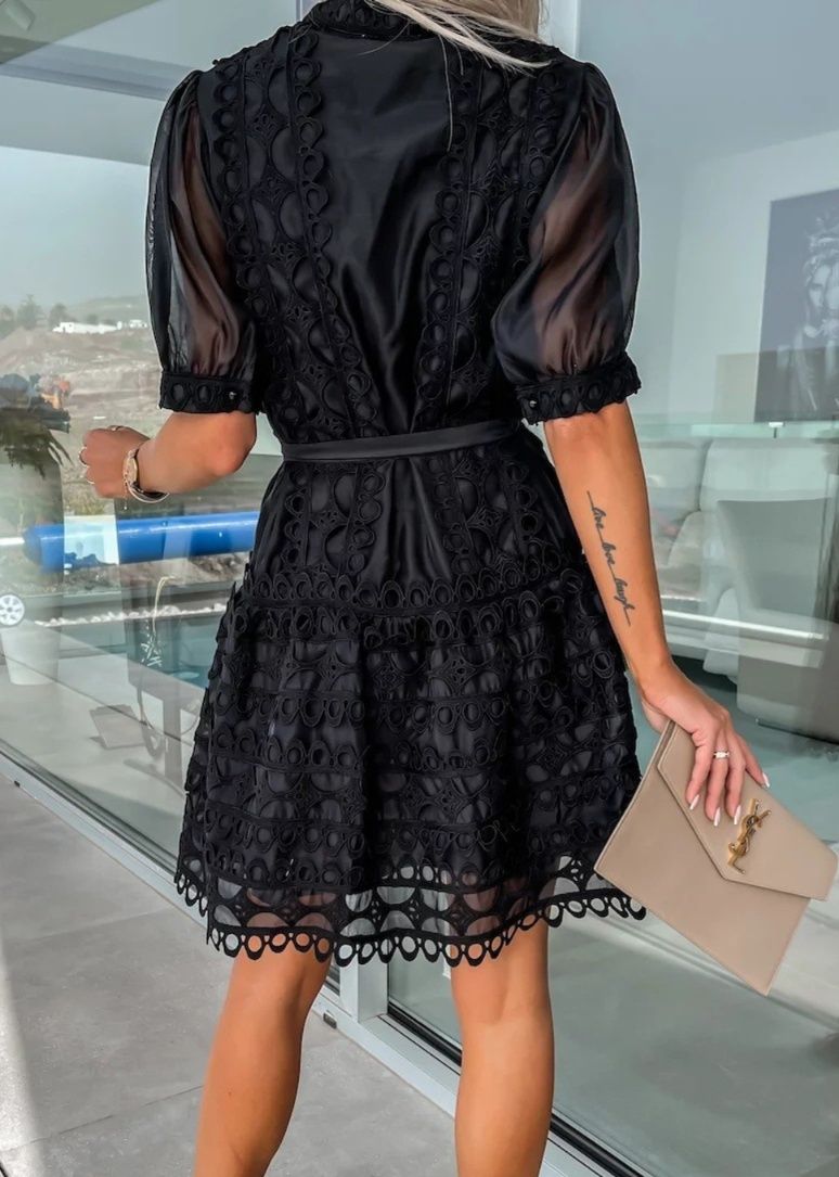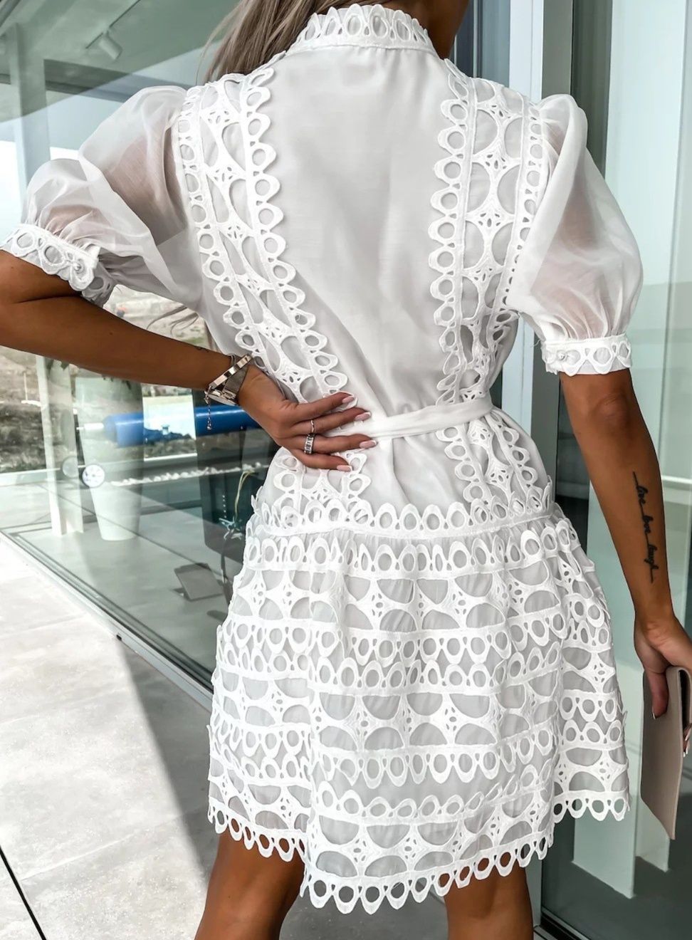 繊細なレース刺繍が全体に施された上品なミニワンピースです。
